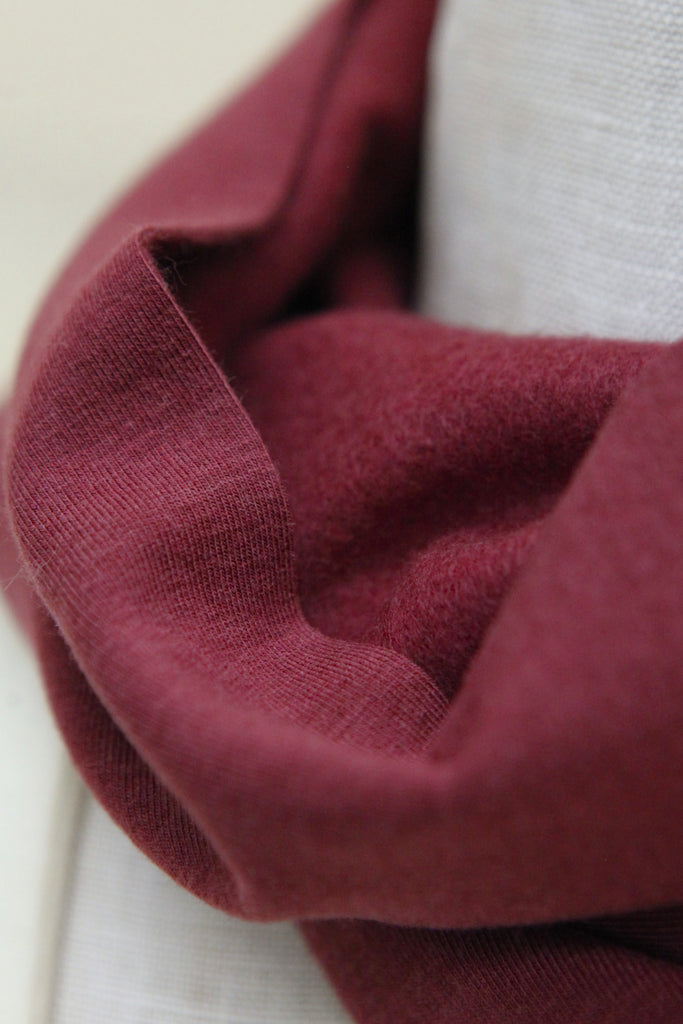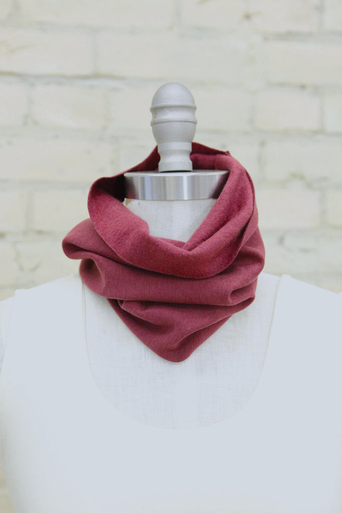 This neck warmer is Hibiscus. This is a dark, dusty purplish pink.