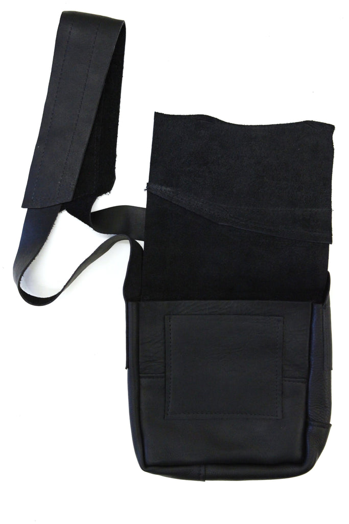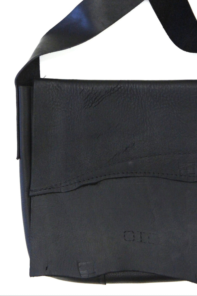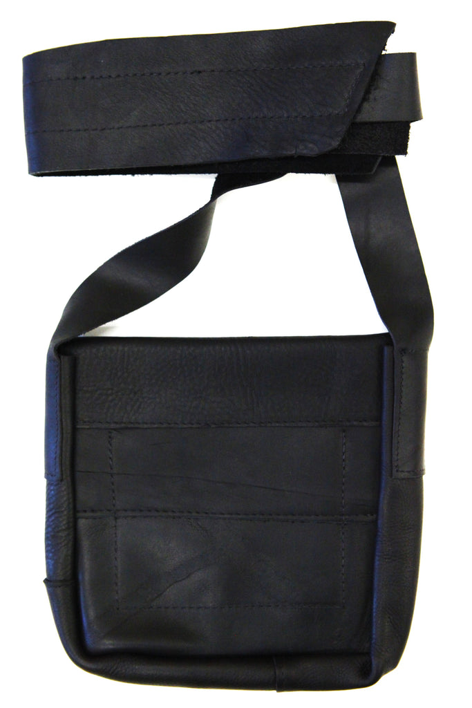 Made from salvaged leather. This leather is both sturdy and ethical, and features many unique markings and interesting, irregular edges. By purchasing this bag, you help keep usable material out of landfills.