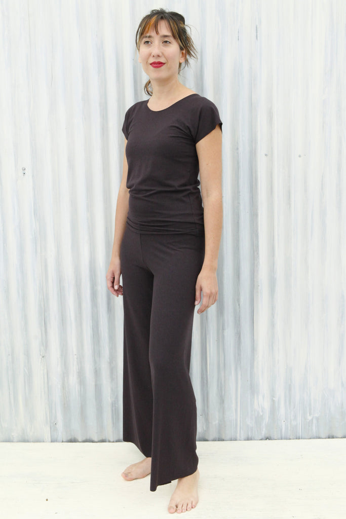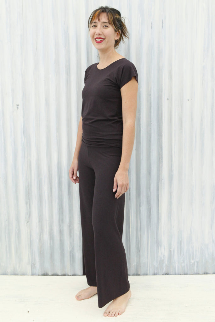 These pants are so soft, stretchy, comfortable, stylish. This dark Coffee color is flattering, forgiving, and easy to match (without being quite as stark as black). These versatile pants can be dressed up to go out, or paired with a simple top for relaxing at home. You are unlikely to feel overdressed or underdressed in these easy pants. You'll never want to take them off (until it gets cold enough to switch them out for the fleece version).