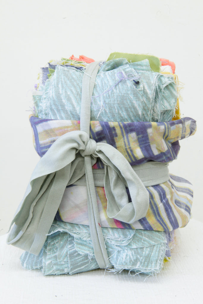 This bundle contains mostly straight weave, lightweight fabrics. Fibers include Line, Organic Cotton, Salvaged Cotton, Salvaged Rayon, and various blends as well.