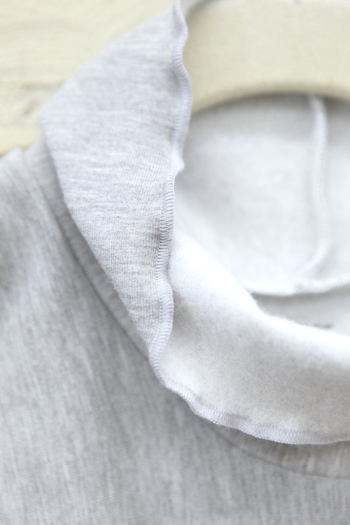 This dress is made from three different cozy yet breathable natural materials. The skirt material is Salvaged Cotton Flannel; the band is made from Salvaged Cotton with Spandex; the Bodice is made from Stretch Fleece (66% Lyocell, 28% Organic Cotton, 6% Spandex.)