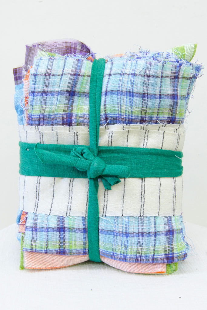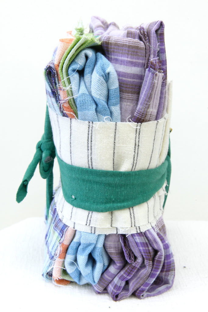 This bundle contains very lightweight fabrics made from salvaged rayon and salvaged cotton, in addition to the "trim" fabrics of this bundle.