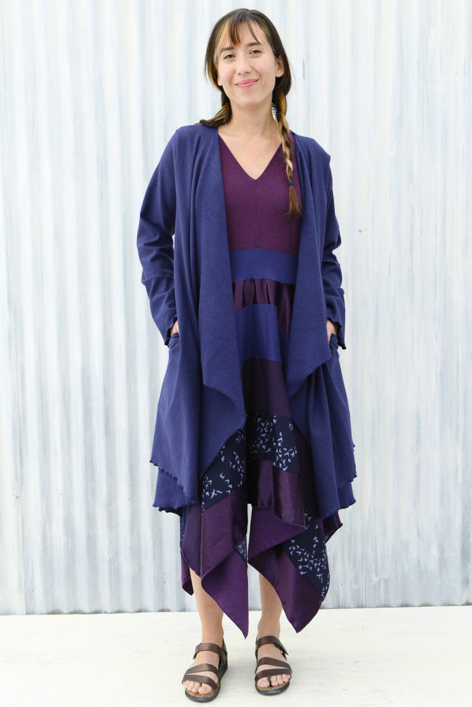 It's about time we made an outer layer out of our beloved stretch fleece fabric! We couldn't think of a better way to add a cozy layer to our offerings, than to resurrect our retired Ramona Wrap. This soft, generous, warm duster will help you thrive in comfort this winter. The updated design now features pockets and rounded corners, for extra functionality. This elegant outer layer is sophisticated and stylish enough for special occasions, and cozy enough to wear every day.